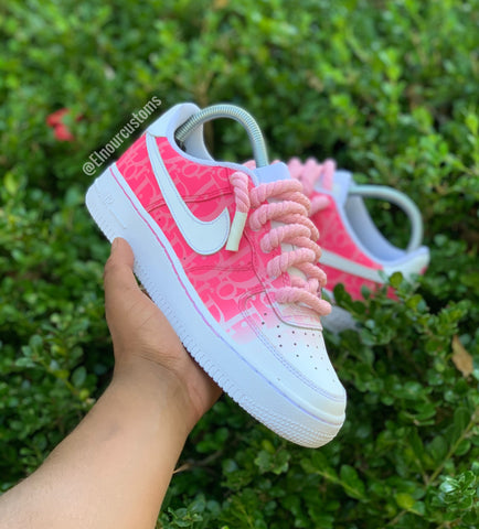 Custom Cherry Blossom(Pink) Dior Air Force 1. Dior is popular brand with some amazing designs. We decided to do a little twist with these customs by have the pink on pink gradient effect with Dior print. Hand painted by @Elnourcustoms. Every shoe is painted with the highest quality of leather paint and covered in a scratch resistance sealer that can withstand some of the harshest conditions.
